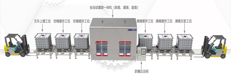 IBC噸桶、200L桶復(fù)合智能灌裝線案例